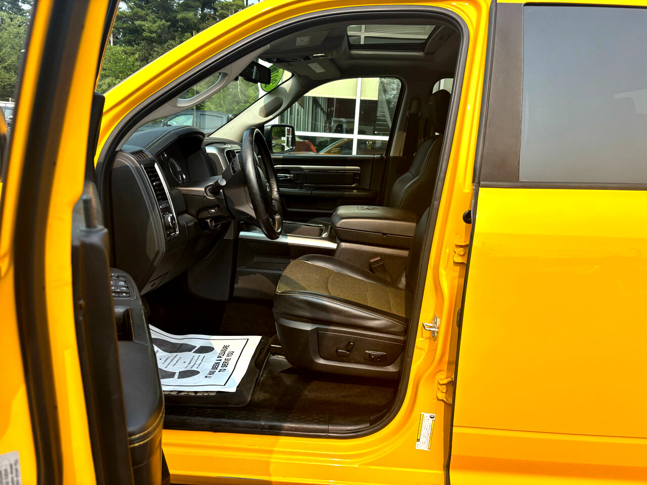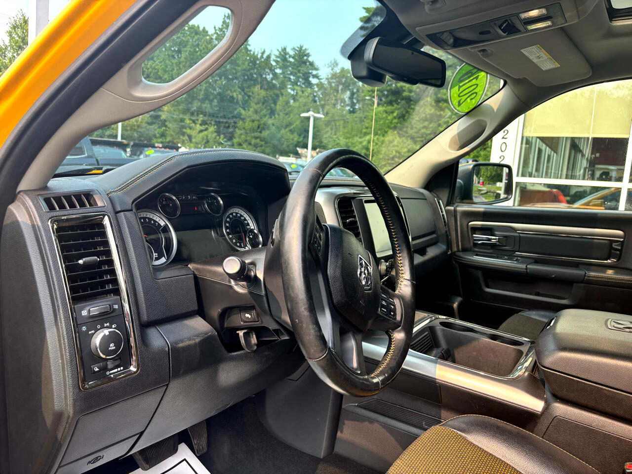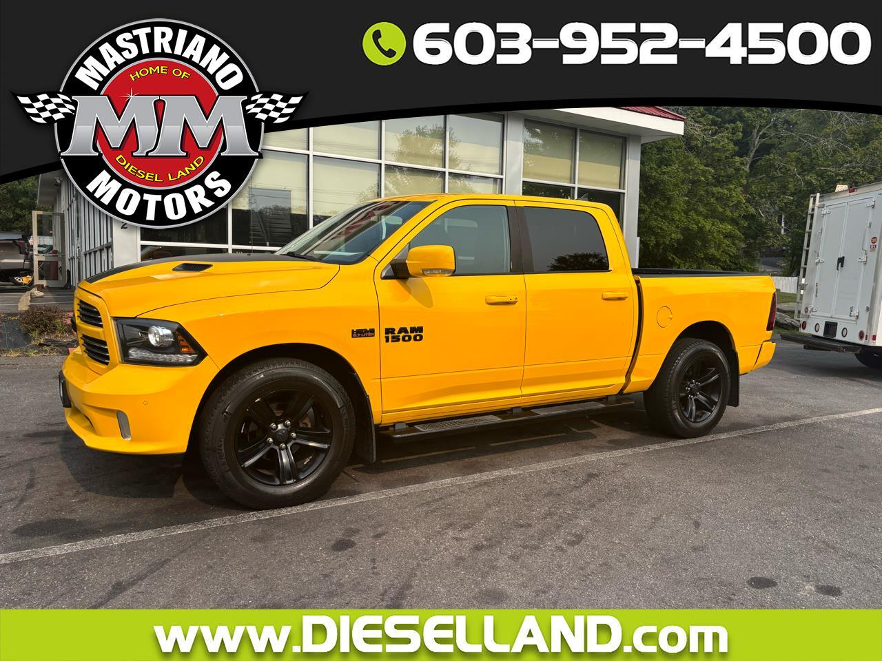 2016 RAM 1500 4X4 CREW CAB BAJA YELLOW LOADED SPORT 5.7L HEMI V8 SHARP TRUCK!!! POWER LOCKS WINDOWS AND MIRRORS, POWER HEATED AND COOLED TWO TONE LEATHER INTERIOR, U-CONNECT BLUETOOTH DISPLAY, NAVIGATION, BACK-UP CAMERA, CLIMATE CONTROL, AUTOMATIC LIGHTS W/ FOGS, ALPINE SOUND, STEERING WHEEL CONTROLS, FACTORY REMOTE START, POWER SUNROOF, POWER REAR SLIDER, RUNNING BOARDS, PUSH TO START, HEATED STEERING WHEEL, KEYLESS ENTRY, FACTORY DUAL EXHAUST, TOW PACKAGE/ TRAILER BRAKE CONTROLLER, SPRAY IN BEDLINER, 2 SETS OF KEYS, 20" FACTORY BLACK WHEELS, RAM FLOOR MATS, FACTORY BOOKS AND MANUALS, SHARP 2016 RAM 1500 4X4 CREW CAB BAJA YELLOW LOADED SPORT 5.7L HEMI V8 GAS WITH ONLY 162K MILES!!!! CREDIT UNION FINANCING AVAILABLE INQUIRE TODAY 603-952-4500!!!!