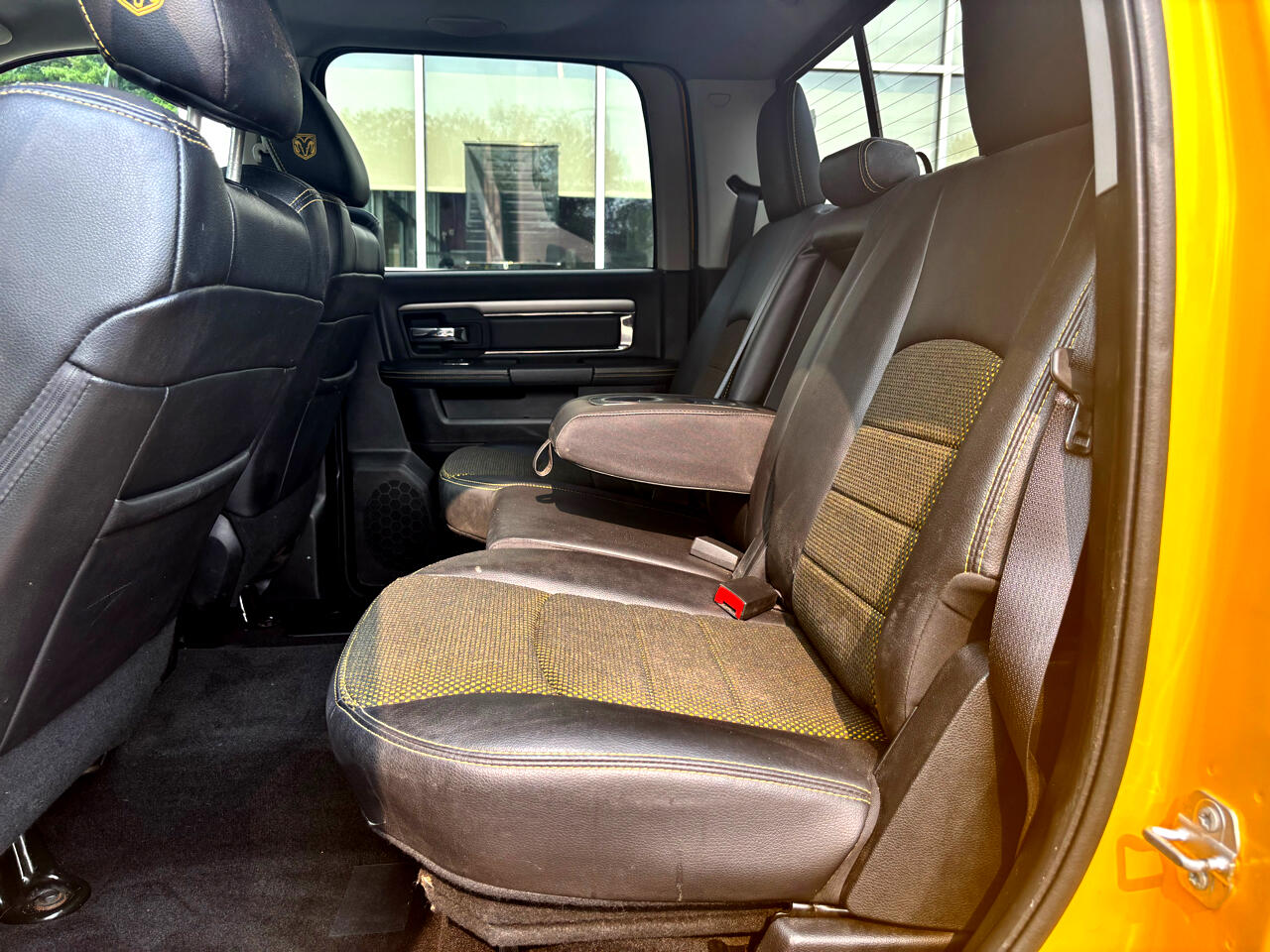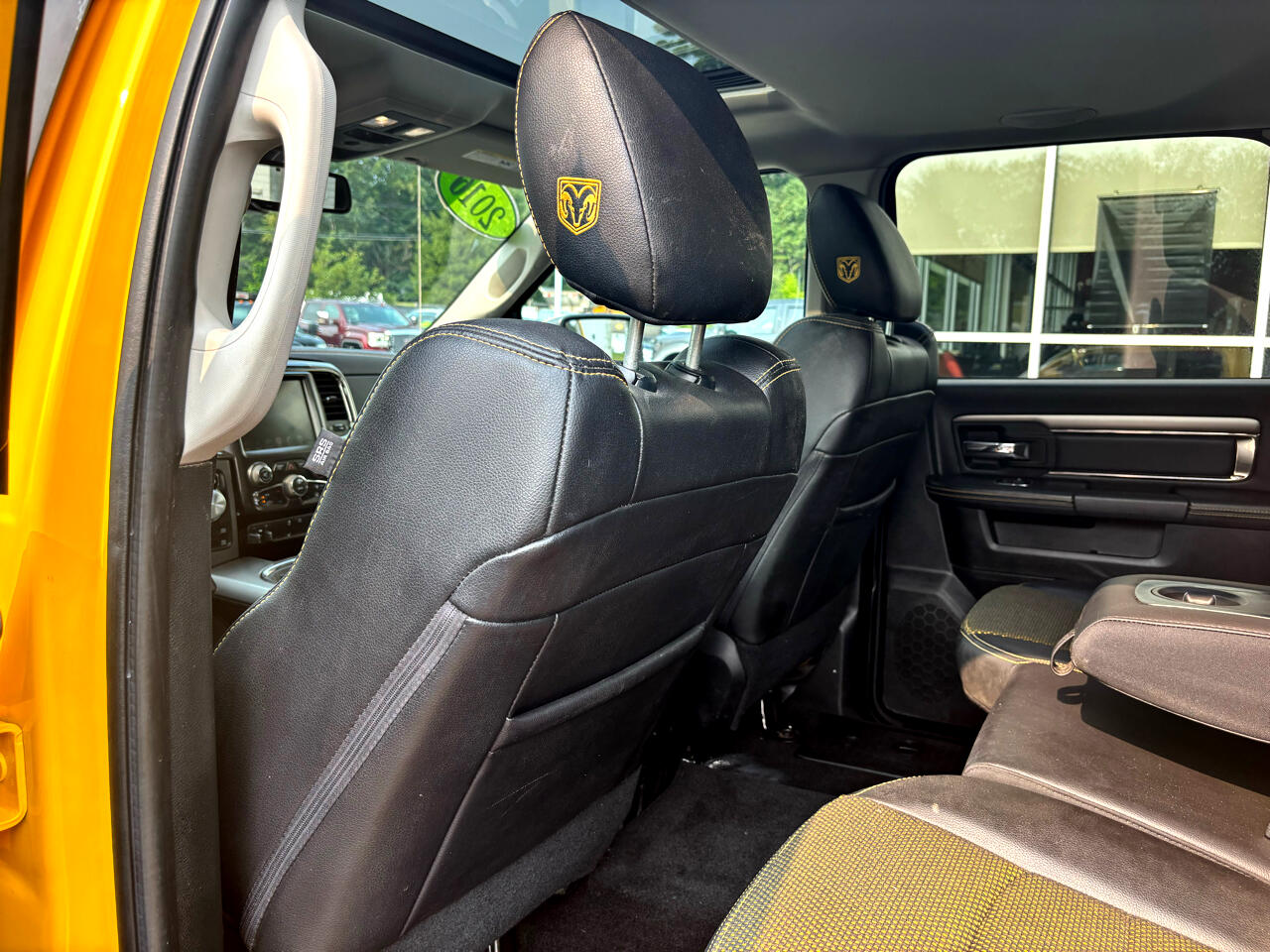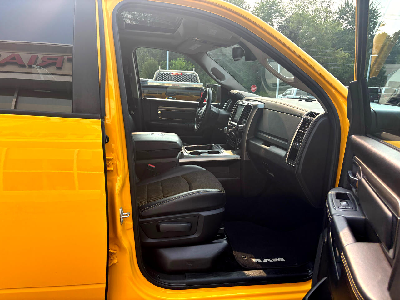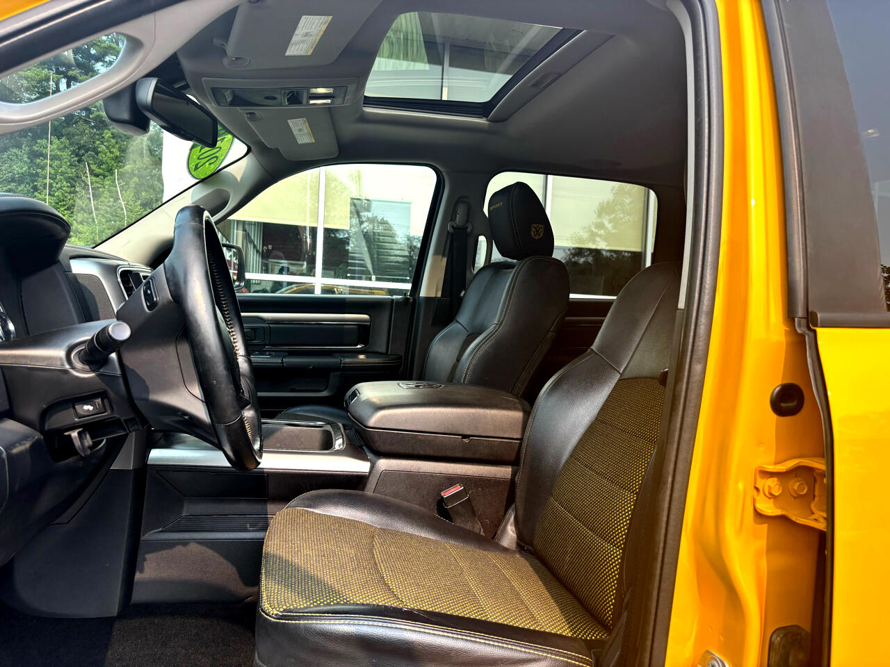 2016 RAM 1500 4X4 CREW CAB BAJA YELLOW LOADED SPORT 5.7L HEMI V8 SHARP TRUCK!!! POWER LOCKS WINDOWS AND MIRRORS, POWER HEATED AND COOLED TWO TONE LEATHER INTERIOR, U-CONNECT BLUETOOTH DISPLAY, NAVIGATION, BACK-UP CAMERA, CLIMATE CONTROL, AUTOMATIC LIGHTS W/ FOGS, ALPINE SOUND, STEERING WHEEL CONTROLS, FACTORY REMOTE START, POWER SUNROOF, POWER REAR SLIDER, RUNNING BOARDS, PUSH TO START, HEATED STEERING WHEEL, KEYLESS ENTRY, FACTORY DUAL EXHAUST, TOW PACKAGE/ TRAILER BRAKE CONTROLLER, SPRAY IN BEDLINER, 2 SETS OF KEYS, 20" FACTORY BLACK WHEELS, RAM FLOOR MATS, FACTORY BOOKS AND MANUALS, SHARP 2016 RAM 1500 4X4 CREW CAB BAJA YELLOW LOADED SPORT 5.7L HEMI V8 GAS WITH ONLY 162K MILES!!!! CREDIT UNION FINANCING AVAILABLE INQUIRE TODAY 603-952-4500!!!!