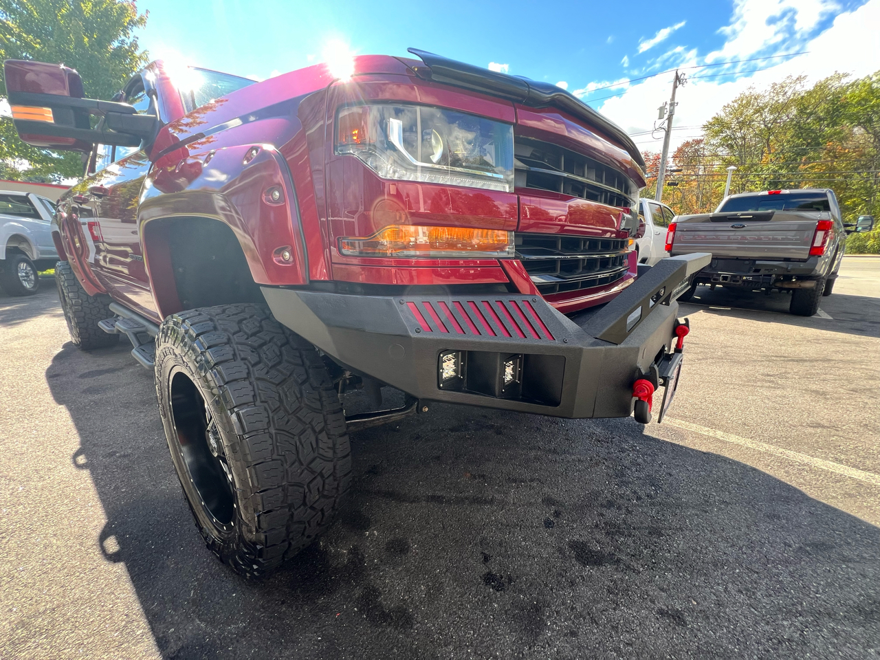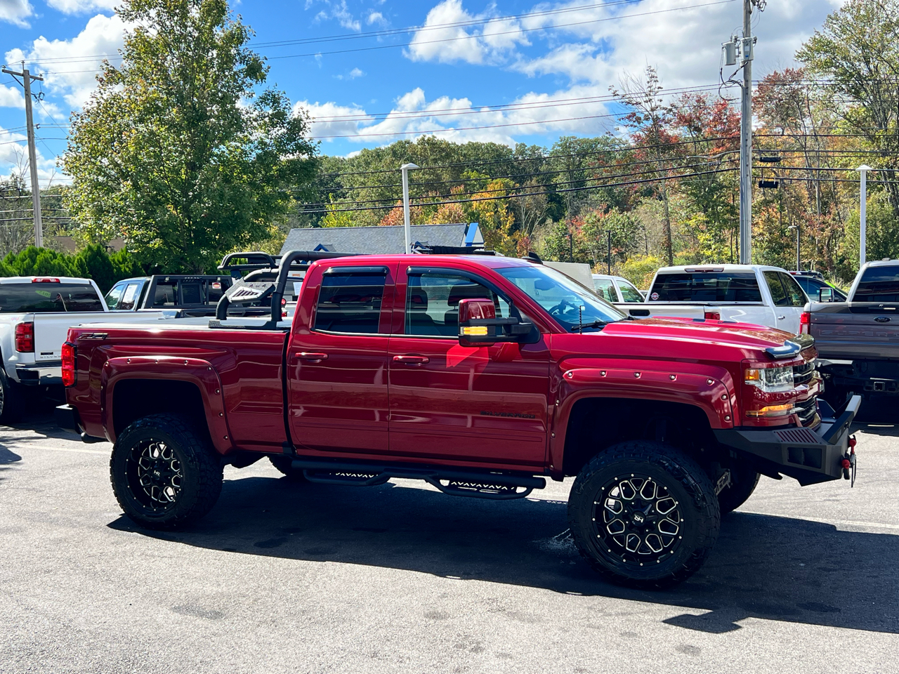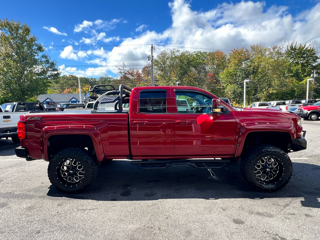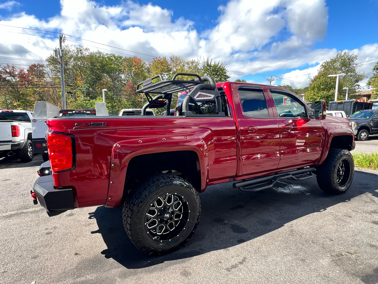 2018 CHEVY SILVERADO 1500HD 4WD DOUBLE CAB 5.3L V8 GAS SHARP LIFTED TRUCK WITH LOW MILES!!! POWER LOCKS WINDOWS AND MIRRORS, CLOTH SEATS WITH FOLDING CENTER CONSOLE, GM BLUETOOTH DISPLAY, NAVIGATION, CLIMATE CONTROL, AUTOMATIC LIGHTS W/ FOGS, FACTORY REMOTE START, CHEVY RUBBER FLOOR MATS, TRAILER BRAKE CONTROLLER/TOW PACKAGE, STEERING WHEEL CONTROLS, SOFT TONNEAU COVER, AFTERMARKET RUNNING BOARDS, 4X4 BACK RACK LUGGAGE RACK, LIFTED ON 20" HARD ROCK WHEELS, MATCHING FRONT AND REAR STEEL BUMPERS, FACTORY BOOKS AND MANUALS, SHARP ONE-OF-A-KIND LIFTED 2018 CHEVY 1500HD 4X4 DOUBLE CAB 5.3L V8 GAS WITH ONLY 84K MILES!!! CREDIT UNION FINANCING AVAILABLE INQUIRE TODAY 603-952-4500!!!! Â