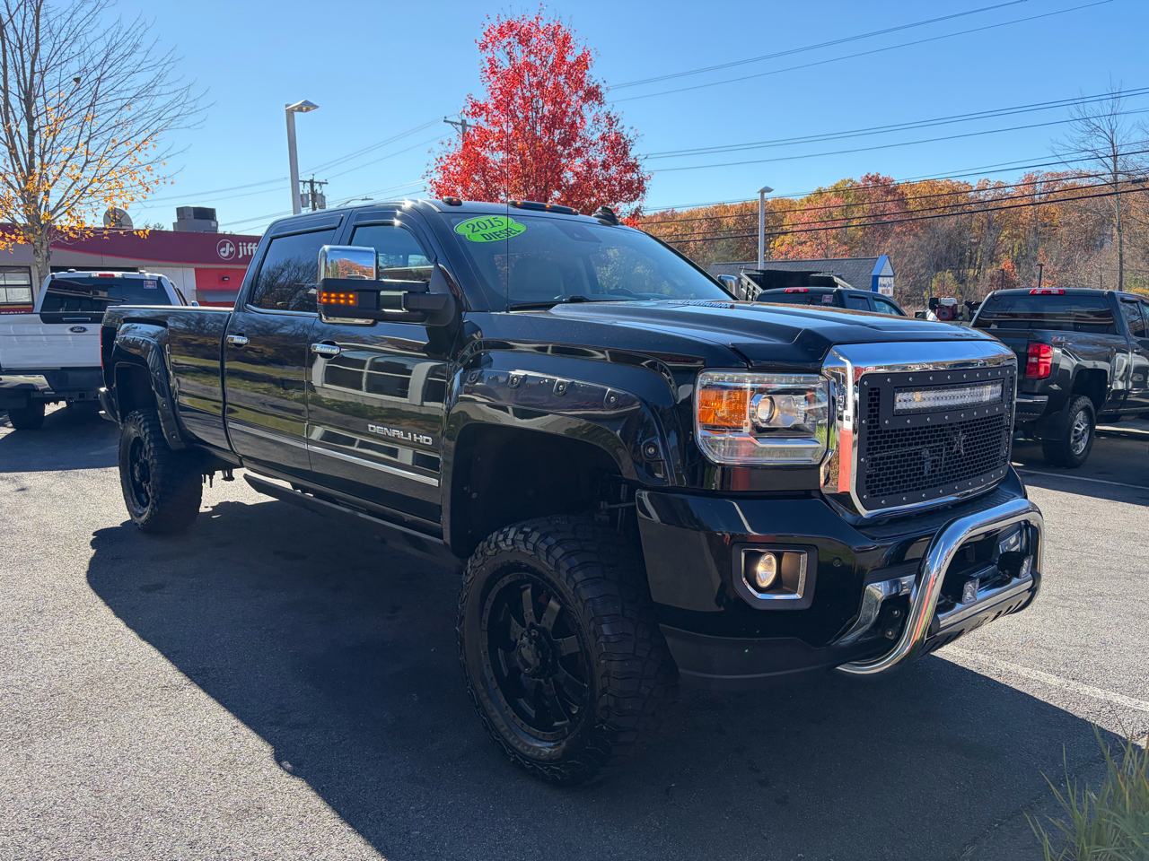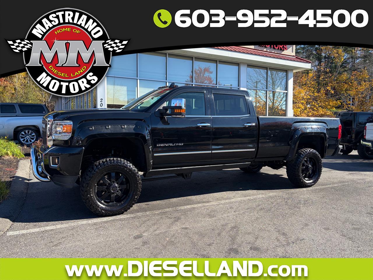2015 GMC 3500HD 4X4 8' BED CREW CAB LOADED DENALI 6.6L DURAMAX DIESEL SHARP TRUCK WITH LOW MILES!!! POWER LOCKS WINDOWS AND MIRRORS, POWER HEATED AND COOLED LEATHER INTERIOR, BLUETOOTH DISPLAY, NAVIGATION, BACK-UP CAMERA, STEERING WHEEL CONTROLS, BOSE PREMIUM SOUND, POWER SUNROOF, FACTORY TRAILER BRAKE CONTROLLER/ TOW PACKAGE, ADJUSTABLE PEDALS, EXHAUST BRAKE, PARK ASSIST, POWER RUNNING BOARDS, FACTORY REMOTE START, POWER REAR SLIDER, SPRAY IN BEDLINER, HARD TONNEAU COVER, GMC FLOOR MATS, FACTORY BOOKS AND MANUALS, 20" ULTRA MOTORSPORT WHEELS WRAPPED IN 35" TIRES, SHARP 2015 GMC 3500HD 4WD CREW CAB LONG BED LOADED DENALI 6.6L DURAMAX DIESEL WITH ONLY 102K MILES!!! CREDIT UNION FINANCING AVAILABLE INQUIRE TODAY 603-952-4500!!!